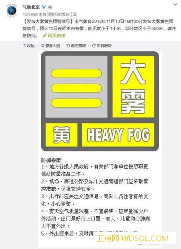 北京发布大雾黄色预警信号能见度小于1_北京-气象-气象台-