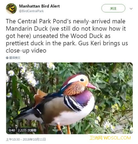 纽约公园出现一只五彩鸳鸯引无数美国粉_曼哈顿-纽约-鸳鸯-