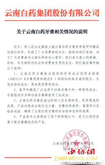 云南白药牙膏被指添止血处方药回应:无_血液科-云南白药-止血-