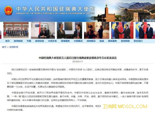 中国驻瑞典使馆发言人就瑞典媒体涉华言_瑞典-截图-中国驻-