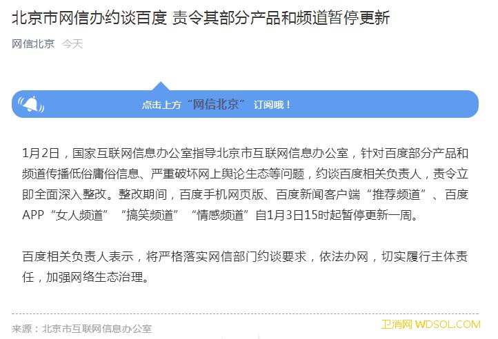 北京网信办约谈百度责令其部分产品和频_责令-整改-北京-