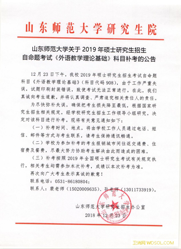 山东师大回应“考研发答案”:工作失误_山东师范大学-补考-科目-