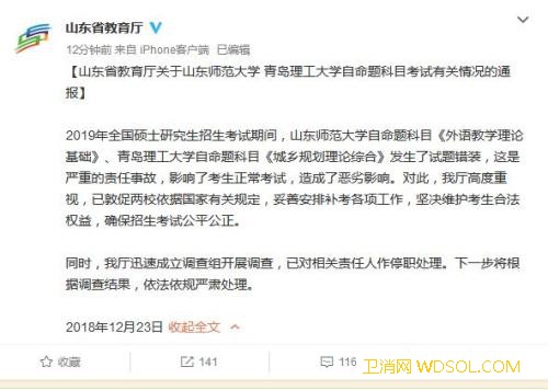 山东教育厅回应考研试题错装:责任人已_山东师范大学-教育厅-山东省-
