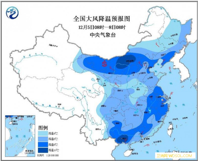 寒潮蓝色预警持续:中东部大部地区将降_长江中下游地区-东北地区-前锋-