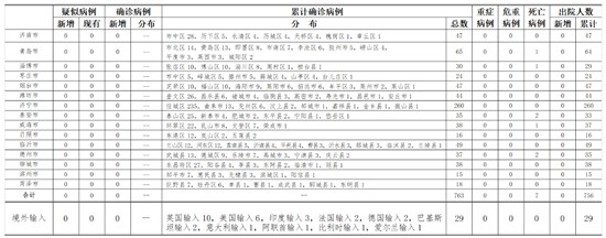 山东无新增境外输入疑似病例、确诊病例。累计报告境外输入确诊病例29例,治愈出院29例。