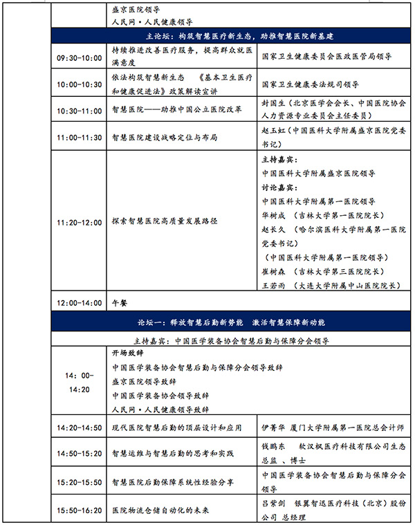 中国医学装备协会智慧后勤与保障分会学术年会论坛日程