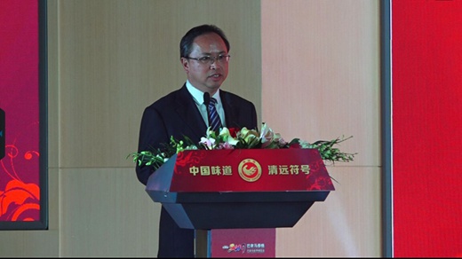 图为清远市副市长雷玉春在发布会上致辞