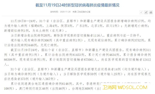 国家卫健委:11月19日新增确诊病例17例均_病例-出院-境外-累计