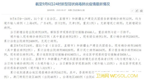 国家卫健委:9月6日新增确诊病例12例均为境_病例-出院-境外-累计