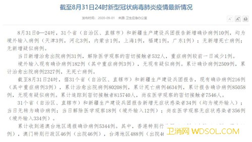 国家卫健委:8月31日新增确诊病例10例均为_病例-出院-境外-累计