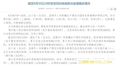 国家卫健委:8月30日新增确诊病例17例均为_病例-出院-境外-累计