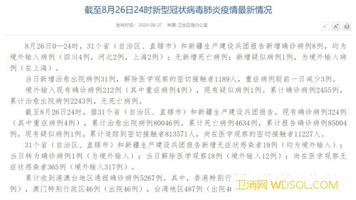国家卫健委:8月26日新增确诊病例8例均为境_病例-出院-境外-累计