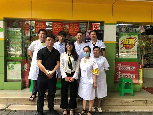 工作人员与广西鸿翔一心堂营运经理合影